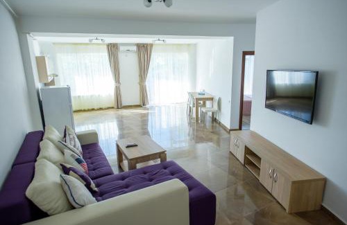 Offering a terrace and barbecue facilities, C&Y Apartments Aqua Park in Mamaia is close to Mamaia Beach and Aqua Magic. This apartment features free private parking, a 24-hour front desk, and free Wifi. The accommodation offers an elevator, full-day security, and currency exchange for guests. Featuring a balcony and lake views, the spacious apartment includes 1 bedroom, a living room, cable flat-screen TV, an equipped kitchen, and 1 bathroom with a bidet. Towels and bed linen are available in the apartment. At the apartment, there's a dressing room for guests to change in. Sightseeing tours are available in the neighborhood. A water park is available at C&Y Apartments Aqua Park, while guests can also relax in the garden. City Park Mall is 1.7 miles from the accommodation, while Siutghiol Lake is 3.6 miles away. Mihail Kogălniceanu International Airport is 12 miles from the property, and the property offers a paid airport shuttle service.