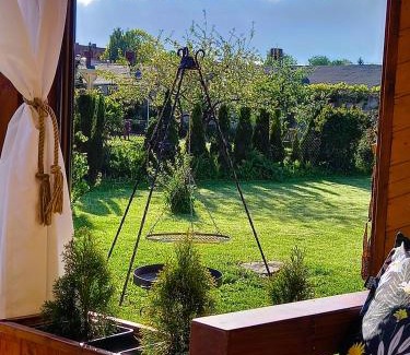 BathroomBody soap, Toilet, Toilet paper, Shower, Towels, Bathtub or showerMedia & TechnologyMobile hotspot device, TV, Flat-screen TVKitchenDishwasher, Electric kettle, Cleaning products, Microwave, Kitchenware, Stovetop, Wine glasses, Kitchen, Refrigerator, Washing machine, Dining table, OvenLiving AreaSitting area, Dining areaGeneralFire extinguisher, Private entrance, Heating, Trash cansBedroomLinens, Wardrobe or closetOutdoorsOutdoor furniture, Outdoor dining area, Terrace, BarbecueViewGarden viewBuilding CharacteristicsSemi-detachedRoom AmenitiesNon-feather pillow, Socket near the bed, Drying rack for clothing, Clothes rack, Sofa bed |