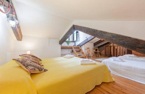 Food & DrinkTea/Coffee makerBathroomToilet, Bathtub, Bidet, Guest bathroom, Towels, Private bathroom, Hairdryer, Toilet paper, Bathrobe, Shower, Bathtub or showerMedia & TechnologyCable channels, DVD player, CD player, Radio, TV, Flat-screen TVGeneralIroning facilities, Lockers, Iron, Hardwood or parquet floors, Trash cans, Air conditioning, Heating, Private entranceActivitiesHot tubKitchenDryer, Oven, Microwave, Electric kettle, Toaster, Wine glasses, Kitchen, Dishwasher, Kitchenware, Dining table, Refrigerator, Washing machine, Cleaning products, Stovetop, Coffee machineLiving AreaSitting area, Dining area, Sofa, DeskViewInner courtyard view, Quiet street view, View, City viewBedroomChildrens' cribs, Wardrobe or closet, LinensAccessibilityUpper floors accessible by stairs only, Emergency cord in bathroomBuilding CharacteristicsPrivate apartment in buildingRoom AmenitiesAdapter, Feather pillow, Clothes rack, Non-feather pillow, Fold-up bed, Drying rack for clothing, Socket near the bedEntertainment & Family ServicesBaby safety gatesLayoutWindow |