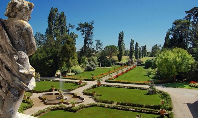 Ca' Marcello is a 4 bedroom, 3 bath Palladian villa built in the second half of the 16th century by the Marcello family, one of the most powerful and noble families of Venice. Villa Marcello was always a private home, a place of glamour and elegance; always open to convivial pleasure and at the same time a warm welcoming home. Count Vettor Marcello and his family live here now, happily opening its doors to those who wish to appreciate it's refined splendor. The villa is a beautiful and untouched example of renaissance architectural balance. The 16th century complex in Palladian style is structured with a central main building which is flanked on both sides by arcaded wings (one of which houses the unit we offer here for rent) which frame an Italian style garden with a fountain, Greek mythical statues, flower beds, lawns and bushes. The park (70.000 m2) which surrounds the villa is fully fenced and rich in wonderful plants and is pleasantly framed by long rows of hornbeams, lime trees and oak trees, which meet in front of a lovely dove cote, a chapel and a large fish pond with running water. Other areas consist of woods with century old trees and numerous statues depicting realistic and fairy-like animals and humans. Here you can enjoy jogging, fishing in the large fish pond, playing soccer or just get pleasure from walking all around the flower beds and the natural paths