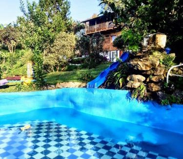 Featuring an open-air bath, Cabaña 4 Caminos 2 provides accommodations in San Francisco. This property offers access to a terrace and free private parking. The chalet has a picnic area and a public bath. With free Wifi, this 2-bedroom chalet features a satellite flat-screen TV and a kitchen with an oven and microwave. Guests can take in the views of the mountain from the balcony, which also has outdoor furniture. For added privacy, the accommodation features a private entrance. There is a snack bar and bar. Guests at the chalet will be able to enjoy activities in and around San Francisco, like hiking. In addition to a year-round outdoor pool, Cabaña 4 Caminos 2 also offers a children's playground. El Dorado International Airport is 35 miles from the property.