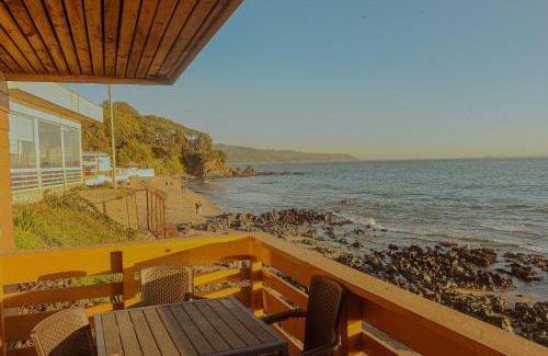 Cabañas Bordemar Habitaciones para 2 y 3, Cabañas para 4 y 5 huéspedes in Tomé offers a private beach area and direct beachfront access. Guests enjoy sea views and a serene garden setting.Comfortable Accommodations