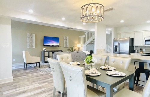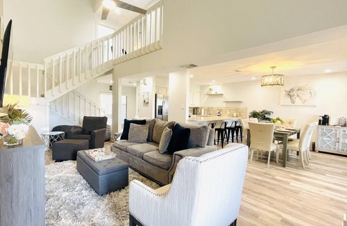 Caballo Bay at Horseshoe Bay features breathtaking views of Lake LBJ and the Hill Country from your own private terrace. Fun for all at this Stylish Retreat with modern decor. Wake up to the relaxing, stunning views of Lake LBJ and enjoy the beautiful sunsets right from your bedroom or the terrace. 2.5 minute drive to the lake and the LBJ Yacht Club & Marina to rent a boat or jet ski to enjoy the lake or bring your own boat as the Marina offers day docks and trailer storage. Fully stocked Kitchen and Coffee Bar with Starbucks coffee. Enjoy all the entertainment and amenities at the home-Air Hockey Table, Board & Card games, 3 TV’s with Roku streaming, Pool, Wine fridge, Wifi, Patio w/ grill, Golf putting green mat, Corn hole, Tennis, Pickleball, Work Space and Reading Nook. Take a walk around the beautiful neighborhood to enjoy the beautiful lake, nature and hill country views. Nice Restaurants and Shopping nearby and only minutes away to Marble Falls. Boating, Golf Courses, Hiking, Fishing, Camp Site, Wineries and Grocery Shop nearby.