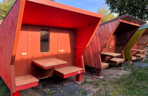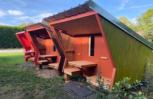 This wooden accommodation is made in FranceFollowing an ecological choice on our part, this type of accommodation does not have a bathroom which is why you will be given a sanitary access badge upon arrival.Cycling friends: a ring on the back of the cabin is specially designed to attach your bikes