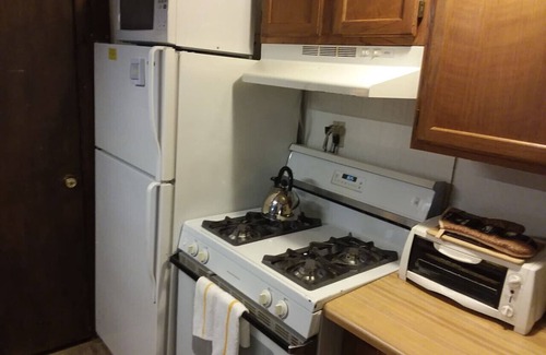 BM Rest in the center of the Adirondack Mts in NY State. We are open year round, spring, summer, winter & fall. This accommodation has a fully equipped kitchen , private bathroom, living room, private bedroom & outdoor fire pit. This accommodation sleeps 4, w/ Direct TV, HBO & Wifi.