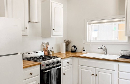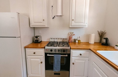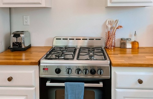 Cabin 8 is a beatifully furnished, spacious studio cabin with a full bathroom, and full kitchen with all the basics as well as a gas fireplace. We work hard to keep the original structure of the cabins, which were build in the early 30's. Inside, the cabin is tastefully decorated.
