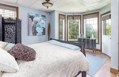 Stay at The Castle on the Lake! Take it easy at this unique and tranquil getaway. A one of a kind property overlooking Pelican Lake. Features a 2 story 5 bedroom home with walk-out basement plus an attached 2-bedroom guest house. Tons of walking trails and green space along with private road access and beach access. This property is perfect for any king or queen getaway, wedding celebration, golf trip, retreat, and more! This castle is available all year round!