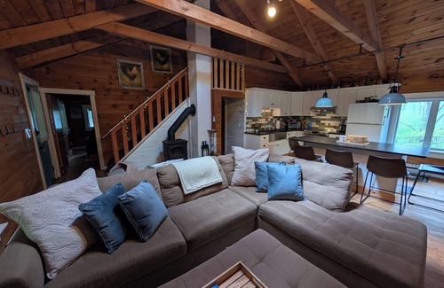 Unwind in this charming log cabin located in Denver, NY, in the peaceful Catskill Mountains.