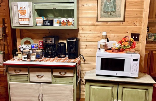 ★KITCHEN: Welcome to your home-away-from-home kitchen! Bring your favorite foods! This charming space, adorned with vintage decor and warm hickory cabinets, is ready for you to cook up a storm. Your fully appointed kitchen features small and large appliance.