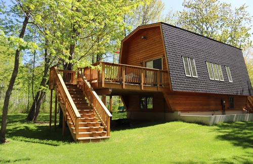 Welcome to our 900 square foot cabin on 30 wooded acres with walking trails. Wildlife is abundant: you will most likely see deer, turkeys, rabbits, grouse and maybe even a bear. The cabin is perfect for year-round recreation as it is located directly on a snowmobile/ATV route and features a trailer-friendly circle drive with plenty of parking.