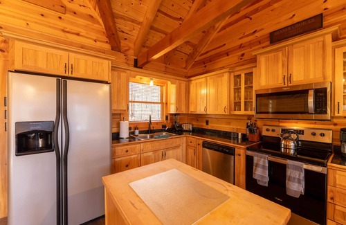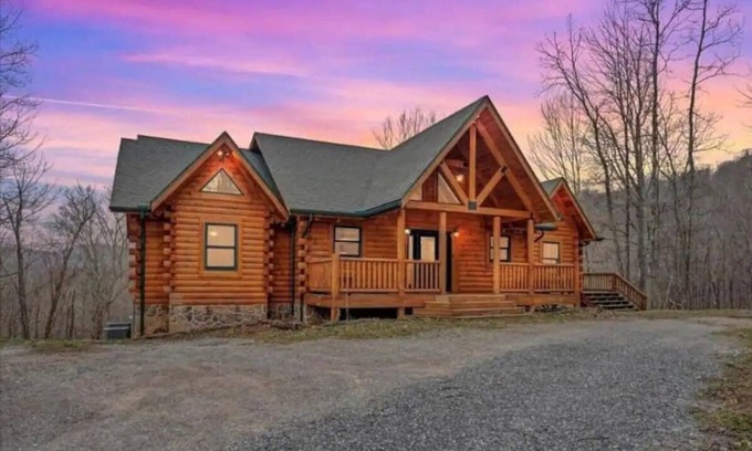 Tucked in the trees on 2+ private acres, Windfall Lodge is not your ordinary cabin in the woods. This spacious Mountain home has an open floor plan with an additional gaming area/living area making ita great place for entertaining and or relaxing. This oversized cabin boasts 6 bedrooms and 5 bathrooms. Beautifully furnished to complement the wood installed throughout, this cabin feels contemporary andcozy at the same time. Large windows allow you to see out into the trees surrounding this large & beautiful cabin. Whether watching the snow fall while having a fire in the fireplace or watching the birds and other animals play in the trees outside, you cannot help but feel at one with nature. This home has thought of everything, two king ensuite bedroomson the main floor two more queen ensuite bedrooms upstairs a bunk room and an additional bedroom downstairs.This home also has 7 large flat screen televisions, a game room equipped with a pool table, a foosball table, and a bar. Not to mention it also has a Brand-new Hot Tub, a fully equipped kitchen, free Wi-Fi, free AT&T cell service, a washer and dryer, and ceiling fans as amenities. Perfect for large parties, Windfall Lodge comfortably sleeps 15 quests and has multiple gathering and entertaining areas. Windfall Lodge is Pet Friendly.Pets will require a non-refundable pet fee. Petsare restricted to dogs only with a limit of two. Contactus directly for additional details on our Pet Policy.Outside you and your group canenjoy the coved porch, the massive wrap around deck, the Hot Tub,the gas grill, the charcoalsmoker,and the fire pit. Windfall Lodge is the Perfect Mountain Getaway!