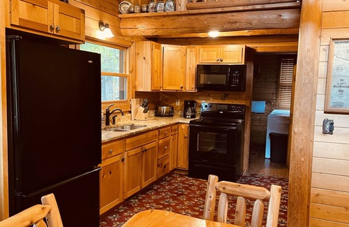 The Reel Inn Cabin in Au Train Michigan is only 10 miles from Munising. Our properties consist of 2 modern log cabins, one is a lodge and the other a cabin, both rented individually. The Reel Inn cabin is right on the bank of the famous Au Train River, known for being one of the best destinations for lazy canoeing and kayaking in upper Michigan. This cozy cedar log cabin sleeps six (including adults, children and infants) has 3 queen size beds, 1 in a down stairs bedroom, 2 in a loft, also has a new full size log futon style couch/bed and a toddler bed. It has a full kitchen (basic spices provided), Mr.coffee drip maker(filters provided) & Keurig (BYO pods) with granite counter tops as well as washer and dryer, and your rental includes all linen and towels. This air conditioned cabin is equipped with a Samsung Smart TV with 200+ built in channels, plus hulu or Netflix capabilities as well as gaming inputs. Ultra fast Starlink WiFi. Also the TV is equipped with game system inputs. Enjoy your Riverside fire pit with small bundle firewood available from many nearby local vendors. Camp fires in designated pit area only. Absolutely NO FIREWORKS on property at anytime. On site we have complimentary canoe & paddle boat and a few adult/children bicycles including a tandem. We also have kayak rentals on site, 1-8 ft youth, 3-10 ft, 2-12 ft, 1-13.5ft recreational tandem, & 1-14.5 ft tandem. All kayaks are sit in cockpit style & are $75 per unit (tandem is $25 more)for the length of your stay (payable on site if you wish)if you pre-pay them in advance with your reservation they are only $50 per unit or $75 for the tandem. reservations are not necessary but are recommended as we do rent to the public also.