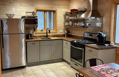 This cabin is nestled in the woods and completely private to you. We offer self check in and check out however the owner is available by phone in case there are any questions or concerns. To maintain the security of our home we do have security cameras on the exterior of the home.