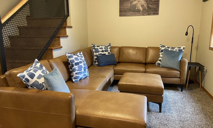 The cabin has been constructed with wood accents throughout to give it a rustic appeal. There are three separate sleeping areas and a bathroom on all three floors. There is a washer & dryer on the lower level.
