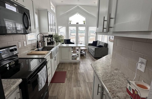 Enjoy the beauty of Jetstream RV Resorts at Stone Oak Ranch in one of our Tiny Home Cabins! The Tiny Home Cabins come fully equipped with linens, a full kitchen, and a full bathroom. While you're here, enjoy the all inclusive resort amenities including two swimming pools and a lazy river, fitness center, club house, pickleball courts, nature trails, laundry facilities, horseshoe pits, and more!