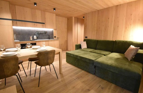 Splendid modern alpine style apartment in the heart of Madonna di Campiglio, ideal for 4 people and the perfect choice for those seeking a relaxing and comfortable holiday immersed in alpine nature.