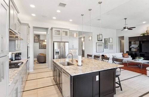 This property is beautifully designed and spacious, featuring a great layout that offers privacy for all guests while providing ample gathering areas. It is situated in a clean, quiet neighborhood. The home is maintained to high standards, reflecting quality and comfort, and is well-stocked for a convenient stay. Guests appreciate the inviting atmosphere and stylish decor, which enhance their comfort. Additionally, the property boasts stunning views and a fantastic pool area for relaxation.