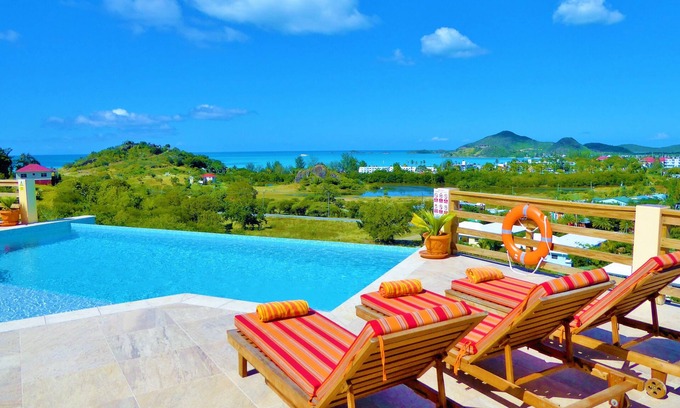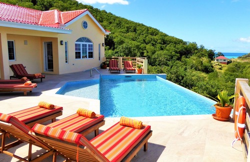 This property is in a league of its own, perched on a massive stone plinth overlooking both harbour and sea - it is a house of grand scale. Built with the sole aim to accommodate up to 8 guests in absolute comfort whilst offering unrivalled 360' views of the Caribbean & local countryside. The infinity pool here is the largest in the area and has the stunning panoramic views. The house has been designed around the Caribbean climate and thus primarily it's for ‘al fresco’ living.