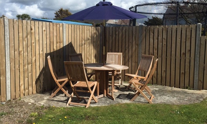 The enclosed and secure garden can be accessed through either the french windows in the dining area or a secure back door from the kitchen area. In addition there is a covered side passage way with lockable door to the front of the property for ease of access for push chairs, bikes, watersport equipment and dogs. A tap with hosepipe is available to rinse muddy/sandy boots, feet and paws.