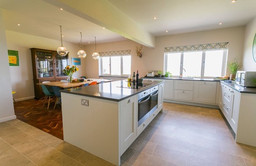 All the living rooms are located on the first floor allowing you to make the most of the wonderful views. And if you enjoy cooking, you will love the large airy kitchen which boasts a coastal vista down over Lligwy Beach and beyond. And what a wonderful place to enjoy convivial breakfasts seated around the big kitchen table! The kitchen is well equipped with double ovens, two dishwashers, a double fridge freezer and an Espresso machine. A separate utility room houses a washing machine, tumble drier and there's plenty of space to dry out sea-soaked towels.