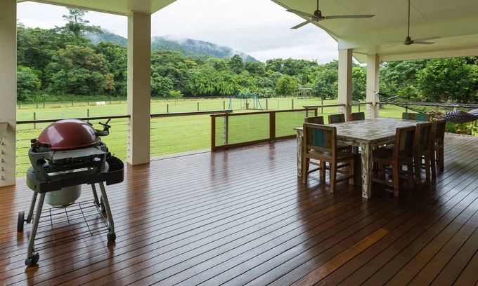 Featuring 2 king Bedrooms - private bathroom - the main king room opens to the timber verandah to World Heritage listed rainforest and mountain tops with quick access to the whole of Far North Queensland.