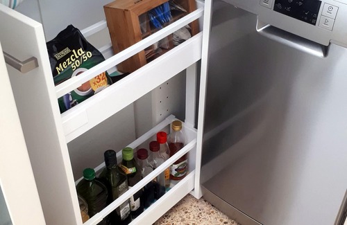 House with everything you need for a relaxing holiday: Enclosed 350 sqm garden plot, two terraces with sun protection and grill. Functional furnishings in the original Ibizan style, a modern kitchen with ceramic hob. Two bedrooms with air conditioning and studio with a bed (all 5 beds 90x2m). Washing machine, cot, high chair and buggy available.