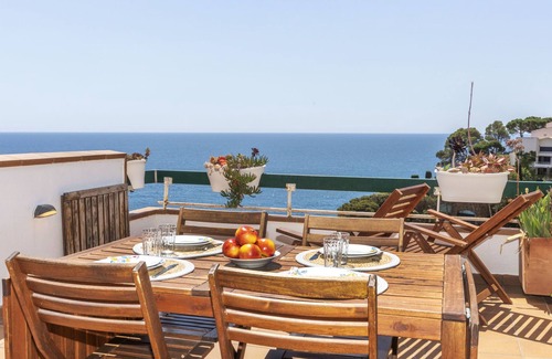 4-room apartment on 2 levels. Bright, cosy furnishings: living/dining room with satellite TV, digital TV and electric heater. Exit to the terrace. Kitchen (oven, dishwasher, 4 ceramic glass hob hotplates, microwave, electric coffee machine). Upper floor: 2 rooms, each room with 1 french bed and electric heater. 1 room with 1 bed and 1 x 2 bunk beds. 2 showers/WC. Gas heating. Large terrace 12 m2. Terrace furniture. Marvellous view of the sea. Facilities: washing machine, iron (extra), hair dryer. Suitable for families. Maximum 1 pet/ dog allowed. HUTG007143 ESFCTU000017021000408757000000000000000000HUTG0071437