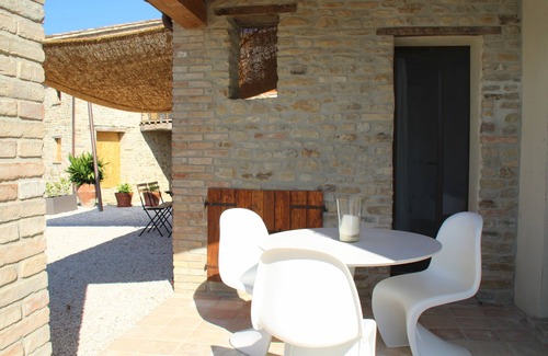 The rooms all have an independent entrance from the outside, with each one having an outdoor area equipped with tables and chairs. The rooms made with a rural-chic design, respecting the use of recycled materials. The swimming pool is beautiful with a view of the surrounding hills, churches and castles.
