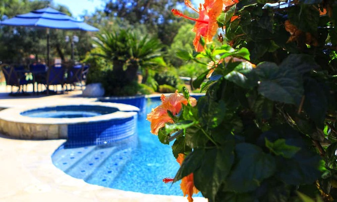 California Dreamin', our HOME, is a contemporary 3 bed/3 bath lodge-like house able to easily accommodate a maximum of 8 guests. Guests have EXCLUSIVE access to the entire resort property - 2,500 sq.ft. house, 3/4 acre garden and grounds, salt water pool, spa, firepit, yard and bowls court. It's ALL yours!