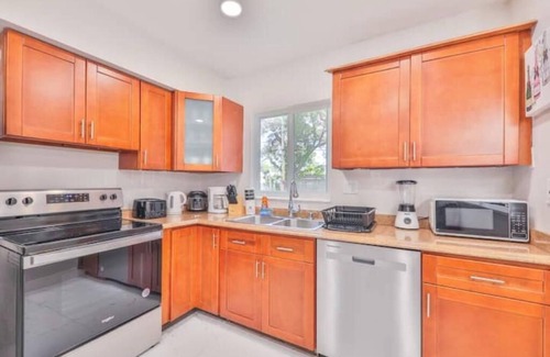 Fully equipped kitchen, Nice and cozy bedrooms for a deep sleep. Light and Spacious house that you and your party will enjoy! TV and Wi-Fi Relax with the whole family at this peaceful place to stay. 10 minutes away from Fort Lauderdale airport. 4 Parking spaces