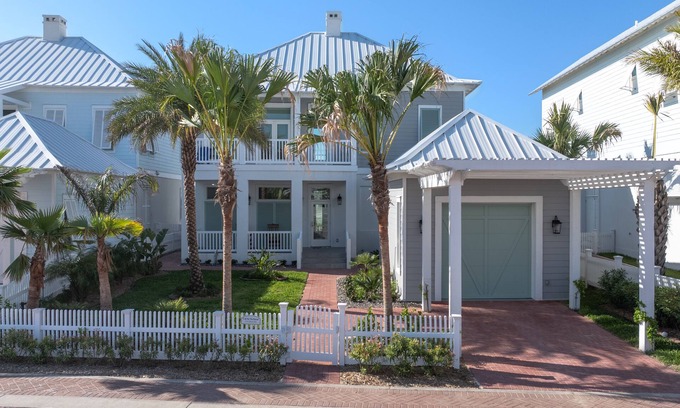 New Custom House at The Shores - "Call Me The Breeze" is a fabulous two strory custom home with a beautiful inviting interior surrounded by large windows and never ending bay views. This beach house has plenty of indoor/outdoor living spaces and is built for families and friends. "Call Me The Breeze" boasts 3 bedrooms and 3.5 bathrooms, accommodating up to 8 guests. Livingroom, dining room, kitchen, bar and bayside balconies are located on the second floor. Entry, master suite and guest bedrooms are on the ground floor. Comfortable furniture, first class beds, luxury linens and vibrant colors make this space so serene and inviting you won't want to leave. The beach is just a couple minutes walk away, while the community park with olympic size swimming pool is less than a minute walk from the house.