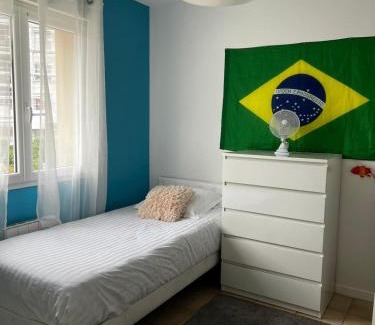 Calme is located in Sannois, just 7.4 miles from Stade de France and 9 miles from Pigalle Metro Station. This property offers access to a balcony, free private parking, and free Wifi. The accommodation features full-day security and luggage storage for guests. Featuring a terrace and inner courtyard views, the vacation home includes 3 bedrooms, a living room, satellite flat-screen TV, an equipped kitchen, and 1 bathroom with a bath and a shower. Towels and bed linen are available in the vacation home. The accommodation is non-smoking. Guests at the vacation home will be able to enjoy activities in and around Sannois, like walking tours. Sacré-Coeur is 9.1 miles from Calme, while Gare Saint-Lazare is 9.2 miles from the property. Paris - Charles De Gaulle Airport is 16 miles away.