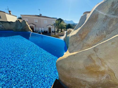 Featuring a garden, Calpe Chalet adosado entorno playa y montaña tranquilidad relax jacuzzi piscina wifi aire jardin barbacoa y parking features accommodations in Calpe. This property offers access to a balcony, free private parking, and free Wifi. The vacation home provides a pool with garden views, hot tub, and bicycle parking. Providing a terrace and mountain views, the spacious vacation home includes 3 bedrooms, a living room, cable flat-screen TV, an equipped kitchen, and 3 bathrooms with a bidet and a bath. Towels and bed linen are provided in the vacation home. There's also a seating area and a fireplace. During warmer months, you can make use of the barbecue facilities and eat on the private patio. Guests can also relax in the shared lounge area. Terra Natura is 18 miles from the vacation home, while Acqua Natura Park is 19 miles from the property. Alicante–Elche Miguel Hernández Airport is 51 miles away, and the property offers a paid airport shuttle service.