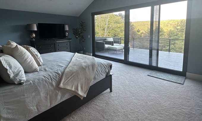 Calypso Hill is a beautiful, luxurious home right in the heart of Fly Creek. The home has modern features and amenities including a sleek and sophisticated modern kitchen, open concept living room with a large beautiful dining area, work out room, a large private study and plenty of outdoor decks and a balcony to take in the breathtaking country valley views. There is also a large play room for lounging after a day in town with a ping pong table and books and toys for the kids!