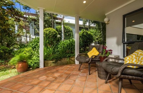 Delightful self contained one double bedroom ground floor apartment - so peaceful, so private, you won't want to leave! Located in one of Auckland's most popular North Shore's beachside suburbs - just a few metres to beautiful Campbells Bay Beach. Continental Breakfast or a cooked English Breakfast is available on request at an extra charge. Please note that there are no cooking facilities in the apartment. Your apartment has its own entrance, lounge and dining area with tea and coffee making facilities - an excellent library and an assortment of games for those rare rainy days, a foot spa, and neck massager to help you unwind. Easy access offstreet parking is available onsite. Nestled in a beautiful garden setting you will enjoy your own private outdoor covered loggia and sunny garden seating area under the Magnolia tree, surrounded by Roses, Gardenias, Irises and Hydrangeas. Safe swimming and beach or bush walks are virtually on your doorstep. Local bus transport is literally at the end of the driveway and there’s access to motorways not too far away. Beautiful beaches, Centennial Park - Tennis and Golf Course just up the road. Movie Theatres and Albany Mega Centre around 10 minutes drive away. The Bays are renowned for their local cafes and restaurants - closeby, Mairangi Bay Shopping Village provides great boutique shopping together with a comprehensive supermarket. Your own space has lounge/dining/bathroom/separate toilet, double bedroom with a queen size bed - laundry facilities are available using a shared washing machine an dryer. Ironing Board and clothesline are also available. Free WiFi is also available. TV and selection of DVD's and CD's are also available for you to enjoy. Sorry - no animals are permitted – Trish, your host lives above, on the property as do Charlie the nine year old Bichon/Poodle, Marco Polo - 17 year old cat and Sammy - the baby pussycat. These pets are part of the family. We look forward to meeting you!