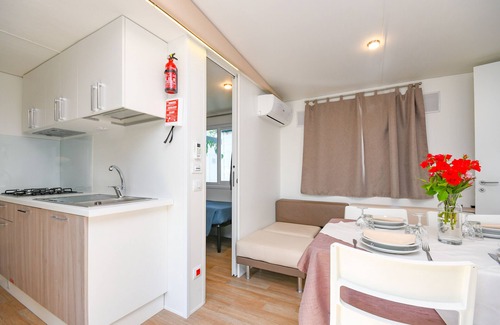 Campeggio del Garda offers 156 accommodations with air conditioning. Rooms open to patios. Each accommodation is individually furnished. Accommodations at this 4-star campground have kitchenettes with refrigerators, stovetops, microwaves, and cookware/dishes/utensils.