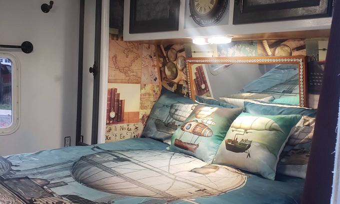 Up to 6 guests in updated camper with large slide out. Walk to faire from camper so no driving needed after a day of fun. When u get back enjoy meeting people while walking around. lots of parties a visiting other campers who have nightly parties.