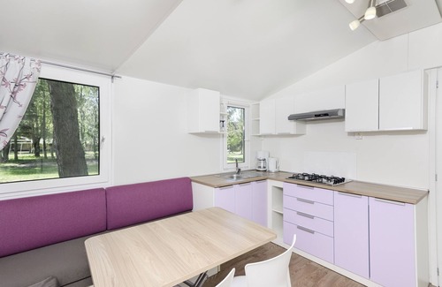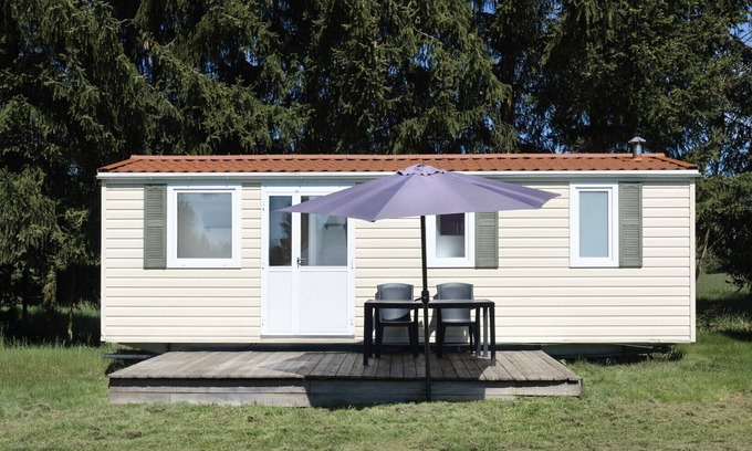 Enjoying space, comfort, and coziness in the Czech Republic!Looking for a nice campsite in the Czech Republic with all the comforts of home? Then you're in the right place with our spacious mobile home with three bedrooms - perfect for a holiday with six people!With 32 m² of living space and three separate bedrooms, this mobile home immediately feels comfortable. You sleep in an extra-long double bed of 200 cm, and in the other rooms you'll find four delightful single beds of 200 x 90 cm. The bathroom is also extra spacious, with a nice shower to start the day fresh..Self-cooking? No problem! The kitchen is fully equipped with a refrigerator, gas stove, crockery, cutlery, knives and cutting boards. This way, you can decide for yourself whether you go out to eat or make something delicious in your own mobile home.The location is ideal: close to the playground, swimming pool and restaurant. All places are car-free and surrounded by greenery, which provides tranquillity and a child-friendly environment.