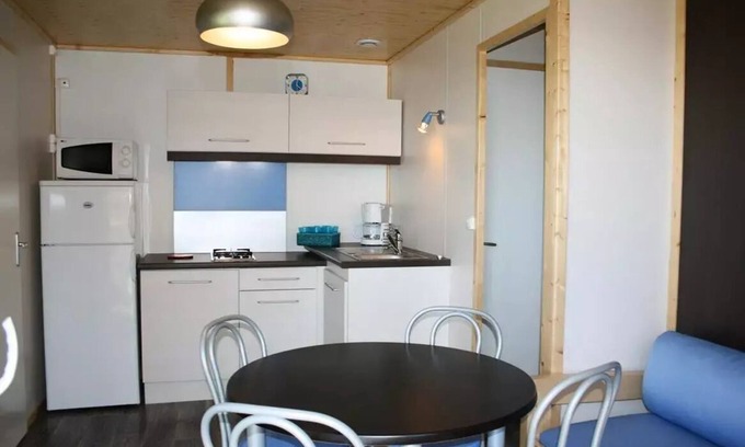 Details: Wi-Fi access : Free access to the terrace Playground for children Family animations Sports animations Final cleaning fee : (optional) €50.00 - to be paid on site Jacuzzi Baby Kit : (cot umbrella and high chair) 10,00€/week - to be paid on site Bedding : 10,00€ - to be paid on site Number of stars : 2 Sin bowling Ping Pong : yes Swimming pool : Outside Near airport : Lyon Saint-Exupéry Airport #LYS (167.2 km), Marseille Provence Airport #MRS (162.6 km) Restaurant : Located 800 meters from the campsite Tourist tax (surcharge) : Current rate - to be paid on site Tennis Surface (m²) : 38 Number of pieces : 3 Number of bedrooms : 2 Number of double bed : 1 Number of single beds : 3 Number of bathroom : 1 Number of toilets : 1 Terrace Pets Allowed : With supplement - Tenus on leash Deposit (in euros) Freezer Coffee maker Cooking plate Dishes and cutlery Heating Cooked Microwave oven Barbecue