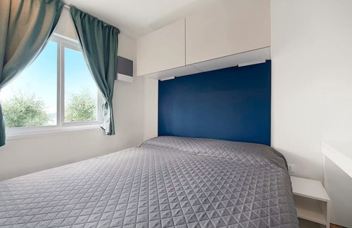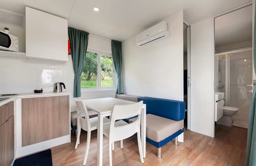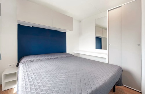 The Eurovil 1 mobile home is located in Predore and offers a beautiful view of Lake Iseo. The 24 m2 unit consists of a living room, a kitchen, 2 bedrooms and 1 bathroom, and thus has capacity for 4 people. There is also a high-speed WiFi (suitable for video calls), a TV and air conditioning. There is also a table tennis table and a pool table. A high chair is also available.