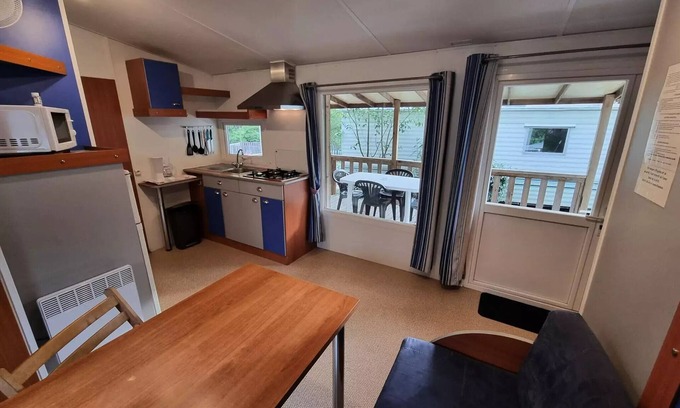 Camping L'Orée des Cévennes * - Mobil home Rapid home 4 people is located in Saint-Jean-de-Valeriscle. Camping L'Orée des Cévennes * - Mobil home Rapid home 4 people provides accommodation, featuring Barbecue/Outdoor Cooking, Child Friendly, Internet, among other amenities. This House features Barbecue/Outdoor Cooking, Child Friendly, Internet, to make your stay a comfortable one.