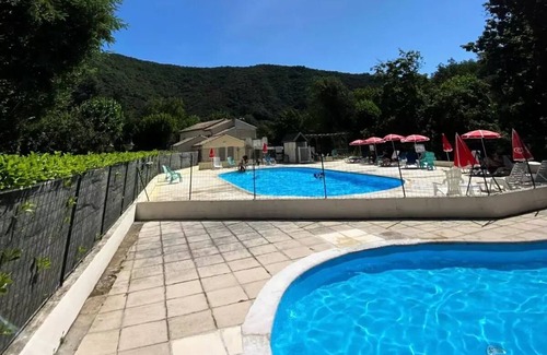Residence: The campsite Les Gorges de l'Hérault runs along the river for 400 m and allows access to private beaches. Swimming all season in the river or pool. Many excursions from the campsite to visit the Cevennes: an authentic and UNESCO World Heritage area. Walks, hikes, bikes, caves, exceptional natural sites, waterfalls ......You can enjoy 2 playgrounds, a boulodrome, and table tennis tables. Access to the river is from the campsite with 2 private beaches. Barbecues are available. We have a washing machine.The swimming pool is open from 15 June to 15 September. The restaurant and bar are open in July and August. The animations for children and evenings take place in July and August as the service of bread.We are located in the Cevennes National Park, ideal for all nature activities. There are local producers and markets (goat cheese, sweet onions ...). You can attend the transhumance in early June.We are also located near the circus of Navacelles, classified great site of France. Don't miss it.Many caves are also accessible like the cave of the ladies at 20 minutes.A little further, you will easily reach Montpellier or Nîmes and its arenas, the Pont du Gard and the beaches of Frontignan, Sète or Palavas the waves.Information welcomePicnic areaFacilities for the disabledAnimals acceptedHigh seasonLow seasoncertain rentallocationdogcaton requestSituationVillageOutside villageDistance (km): 1Side of:riverNearby:riverDistance in km: 0In the countrysideIn the forestSide of:riverNearby:riverDistance in km: 0In the mountainsCross-country ski resortDistance in km : 40Ski resortDistance in km : 40By the waterInfrastructureCatering infrastructureBar (- H.Season alone.)Restaurant (- H.Season alone.)Pizzeria (- H.Season alone.)Snack (- H.Season alone.)Bar / drink (- H.Season alone.)Collective barbecueHealth infrastructureCommon sanitary units: 2ShowersWCWashbasinsWaste waterHousehold equipmentGroup laundryHot water washersChanging tableIronLeisure equipmentTelevision showMaximum number of persons : 30WifiFreeThe whole establishmentTradeTrades 1st necessity (- H.Season alone.)Epiceria (- H.Season alone.)ChildrenOutdoor play areaSwing : 1Portal: 1Toboggan : 1Trampoline: 1PoolsSwimming pool : 1Sports infrastructureStadium (Distance: 7 km )Tennis (Distance: 7 km )Golf (Distance : 10Km )BoulodromeBase of canoe kayak (Distance : 10Km )Equestrian riding (Distance: 7 km )Climbing (varappe) (Distance: 10Km )Hiking TrailCycle path (Distance: 4 km )Marked trailsCar or motorcycle circuit (Distance: 40 km )Alpine ski trail (Distance: 40 km )Cross-country ski trail (Distance: 40 km )Summer toboggan track (Distance: 40 km )Leisure infrastructurePool roomPlayroomCinema (Distance: 7 km )Library (Distance: 10 km )PoolTourist trains (Distance : 40 km )Vivarium - Aquarium (Distance: 50Km )Zoo – animal park (Distance : 50Km )ServicesCatering servicesTakeout dishes (- H.Season alone.)Cooked dishes (- H.Season alone.)Deposit of bread (- H.Season alone.)Deposit of pastries (- H.Season alone.)Animation servicesAdult entertainment (- H.Season alone.)Children's entertainment (- H.Season alone.)Evenings (- H.Season alone.)Shows (- H.Season alone.)Concerts (- H.Season alone.)Tourism / LogisticsTourist information (Distance : 4 km )Tourist documentationIce repositoryActivitiesSports activitiesGolf (Distance : 10Km )Live water sportsRope sportsAir sportsFisheriesCanoeing - KayakPing-PongBicyclesMountain bikingEquityPetancaParagliding (Distance: 10 km )Hiking