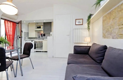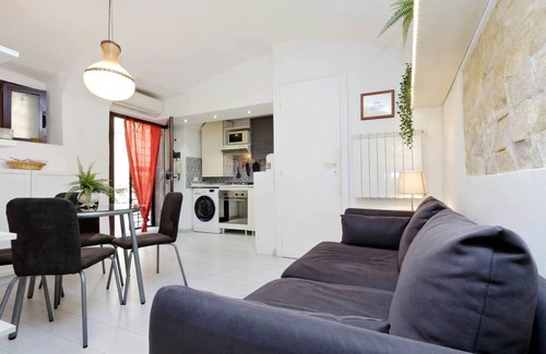 This 1-bedroom, 1-bathroom rental features a sofa bed and air conditioning. Bathroom amenities include a hair dryer, towels, and toilet paper. The kitchen is equipped with an oven, a stovetop, and a refrigerator, as well as a coffee maker, an electric kettle, and a microwave. And you can even pack a bit lighter because there's a washer and dryer. Other amenities include bed sheets, an ironing board, heating, and a dining table.