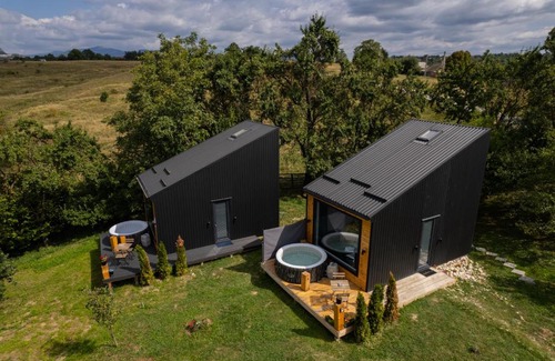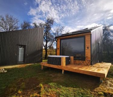 Providing garden views, Campolongo Tiny Chalet in Câmpulung provides accommodations and a garden. There's a private entrance at the chalet for the convenience of those who stay. Free Wifi is available throughout the property, and Cheile Gradistei Adventure Park is 26 miles away. The chalet provides guests with a terrace, mountain views, a seating area, cable flat-screen TV, a fully equipped kitchenette with a microwave and a fridge, and a private bathroom with walk-in shower and bathrobes. Kitchenware and coffee machine are also provided. At the chalet complex, each unit is equipped with bed linen and towels. Sibiu International Airport is 99 miles away.