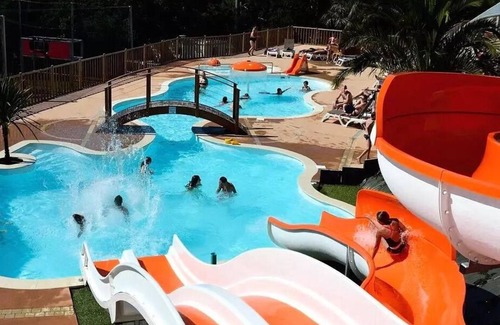 Details: City center access : 800 m Beach Access : 600 m Wi-Fi access : Free Playground for children Children's animation : July and August Family animations : theme parties, shows, concerts, etc... Sports animations Pets allowed : 35€ / stay - 1 pet per accommodation - dogs of categories 1 and 2 forbidden - to be settled on site Deposit (in supplement) : 300 Baby chair : 15€/week - subject to availability - to be paid on site Grocery store : convenience store - bread and pastries on order all season Final cleaning fee : 50€ / accommodation 2 bedrooms - 80€ / accommodation 3 bedrooms - to be paid on site Laundromat : washing machine 5€, dryer 4€ - iron ready - to be set on the spot Bedding : 12€/bed - to be paid on site Towels : Towel kit : 1 large + 1 small : 8€ - to be set on the spot Crib : 15€/week - subject to availability - to be paid on site Number of stars : 4 Water park : space of more than 600m2 with slides, pentagliss, playful water games, paddling pool Sin bowling Ping Pong Swimming pool Indoor swimming pool : heated to 28°C - sliding bays - opening from 10am to 7pm from 1 April to 30 September Close trade : 600m Game room : with library Snack bar : open from 11am to 00am in July/August and from 6pm to 8pm in low season Tourist tax (surcharge) : 0.50€ / day / person from 15 years old - to be paid on site Tennis Multisports ground Green key Pets Allowed : With supplement - Tenus on leash Heating Number of bedrooms : 2 Number of bathroom : 2 Surface (m²) : 32 Television Terrace Cooked Microwave oven Number of toilets : 2 Barbecue