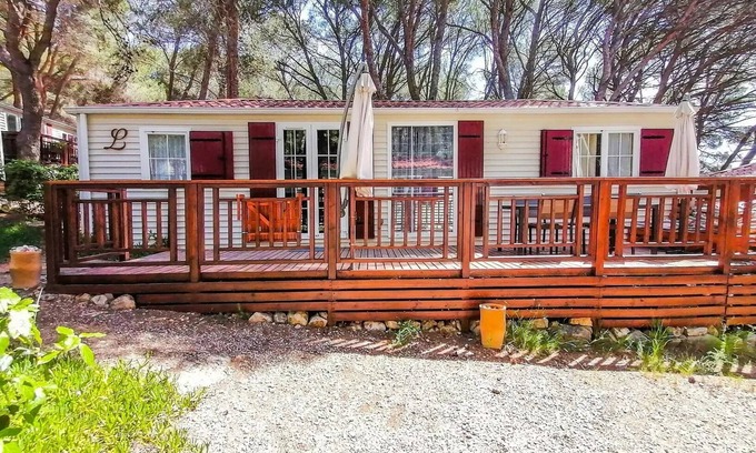 Campsite Residential La Pinède * - Blueberry3 PREMIUM- 3 bedrooms 40m2- *Clim, terrace, TV* 6 persons is located in Castelnau-de-Guers. Campsite Residential La Pinède * - Blueberry3 PREMIUM- 3 bedrooms 40m2- *Clim, terrace, TV* 6 persons provides accommodation, featuring Fireplace/Heating, Barbecue/Outdoor Cooking, Child Friendly, among other amenities. This House features Fireplace/Heating, Barbecue/Outdoor Cooking, Child Friendly, to make your stay a comfortable one.