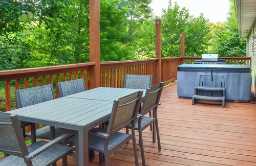 OUTDOOR LIVING: Private hot tub, gas grill, fire pit, outdoor dining