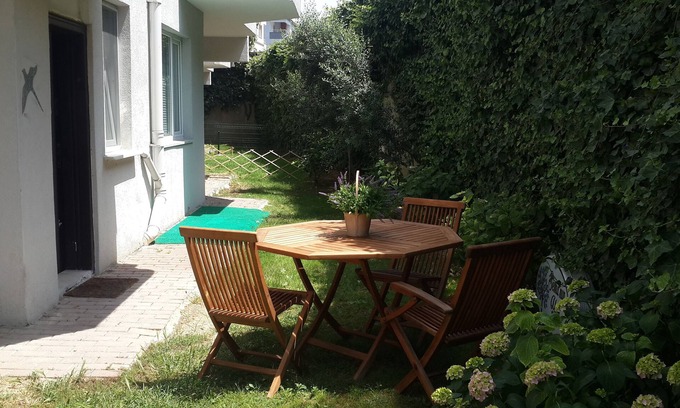 The apartment has 3 bedrooms, a kitchen, a bathroom, a livingroom and a garden. It is located in a very quiet area of Bursa.