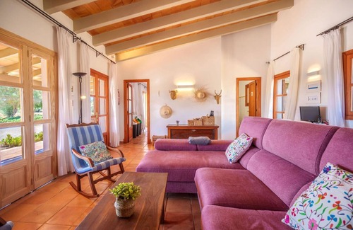 Son Artigues 3 km from Felanitx: Beautiful, comfortable farm estate "Can Soler", detached, surrounded by trees and fields. 5 km from the centre of Felanitx, 8 km from the centre of Porreres, 55 km from the centre of Palma, 2 km from the edge of the forest, 21 km from the sea, 22 km from the beach, in the countryside. Private: natural state property 15'000 m2 (fenced), orchard, swimming pool (9 x 5 m, seasonal availability: 01.Jan. - 31.Dec.). Shower/WC in the pool area, table tennis, boules, badminton, pool maintenance by the owner/gardener. In the house: table football. 600 m long motor access to the house (via unmade road). Roofed, parking on the premises. Shop 5 km, grocery 5 km, supermarket 7 km, shopping centre 20 km, restaurant 8 km, bakery 5 km, café 6 km, bus stop "Felanitx" 5 km, railway station "Manacor" 19 km, sandy beach "Cala d'Or / Porto Colom" 20 km. Sports harbour 20 km, marina 20 km, golf course (18 hole) 17 km, surf school 22 km, sailing school 22 km, tennis 20 km, riding stable 8 km, sports centre 5 km, walking paths from the house 3 km. Nearby attractions: Rafa Nadal Tennis Academy 19 km, Cuevas del Drach 30 km, Cala Varques 15 km, Sant Salvador 11 km. Please note: car recommended. Suitable for families, suitable for seniors. Object suitable for 6 adults. The owner does not accept any groups. The owner does not accept any youth groups. Airfield 40 km from the property.