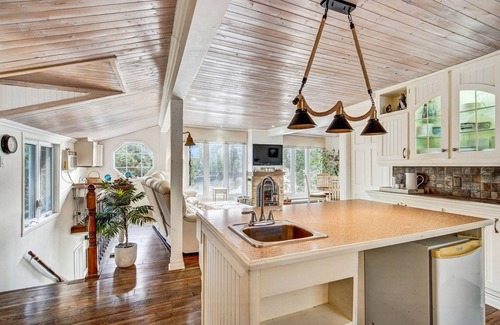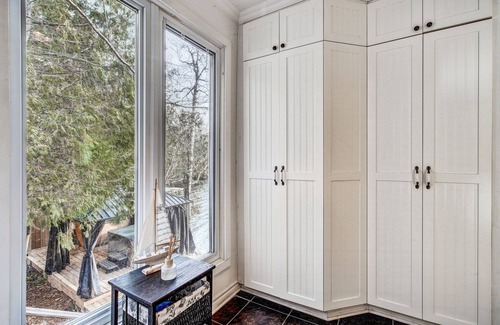 Nestled in the pristine heart of Canadian wilderness, "The Boathouse" cottage offers breathtaking views from its idyllic location on the lake, a mere 12 minutes from the world-famous Tremblant International Resort in Mont-Tremblant. This retreat is a haven for up to eight guests, featuring a nautical-themed master suite that boasts panoramic vistas of the tranquil lake, ensuring an intimate and serene escape.